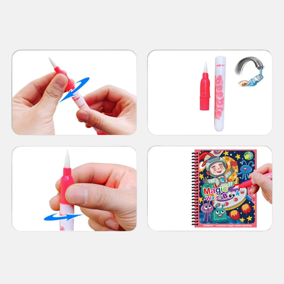 Feutres sur les murs, tâches sur les vêtements, crayons cassés partout ? Quand ton enfant colorie, ça finit souvent en stress plus qu’en plaisir. Avec WaterBook™, finis les dégâts : ce cahier magique réagit à l’eau uniquement, pas besoin d’encre ni de peinture. Zéro tache, 100% fun.